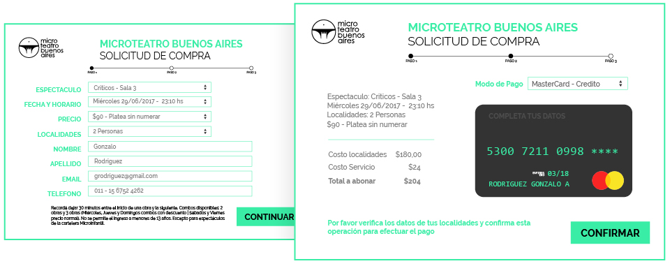 Optimizamos el proceso de compra de las entradas en la tienda. Se puede realizar desde la visualización de las obras en tres simples pasos y así facilitando esta etapa y dando una experiencia de compra en el e-commecre, que simplifica cada proceso.